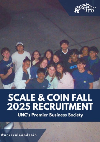 Founded in 2019, Scale and Coin is UNC's premier business society. As both a community of scholars and a network of professionals, we strive to provide our members with guidance in the business world. Our community is built upon core values such as leadership, knowledge, and service, and we enable motivated students to teach and learn from each other via an extensive business curriculum, numerous skill workshops, and networking events with firms from a diverse array of industries.
