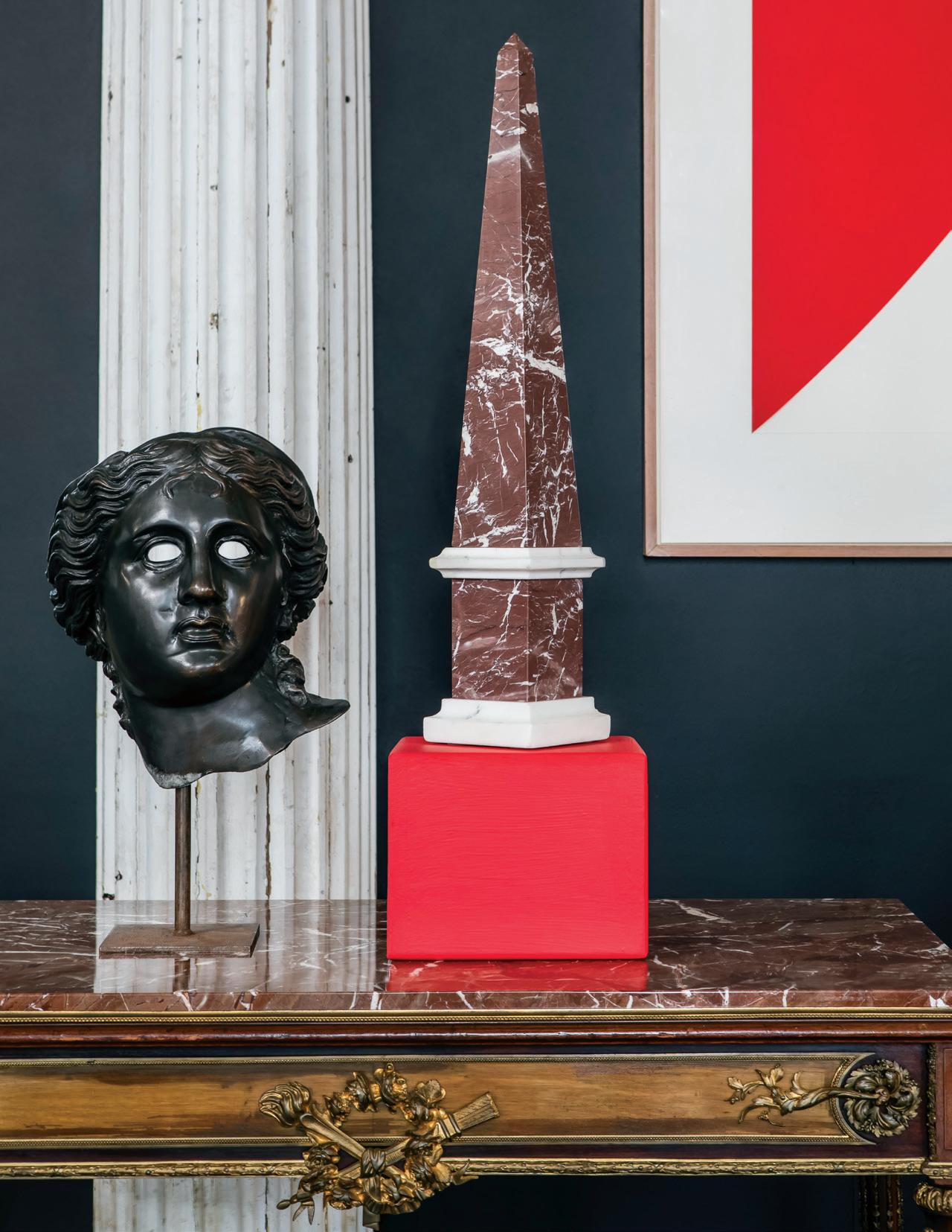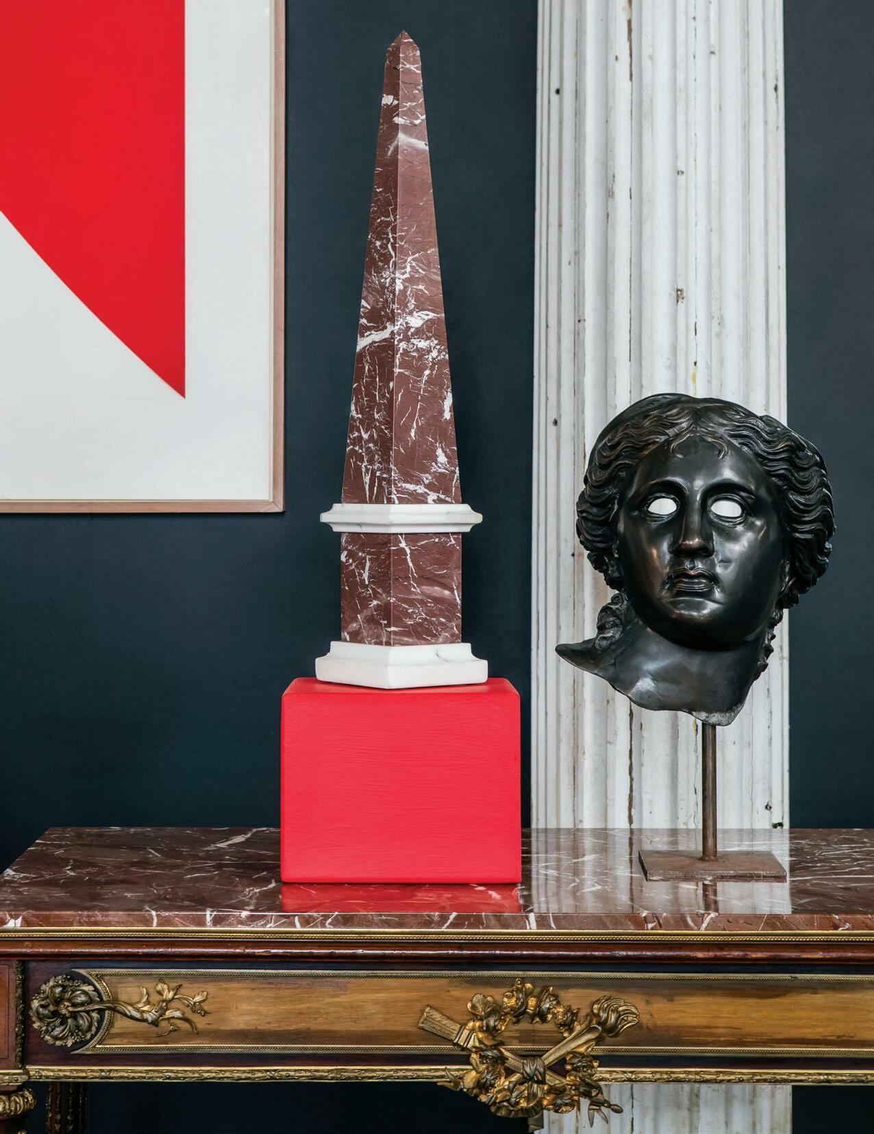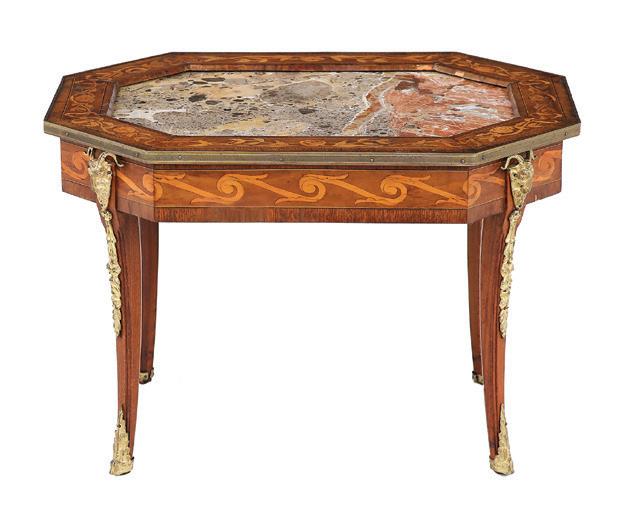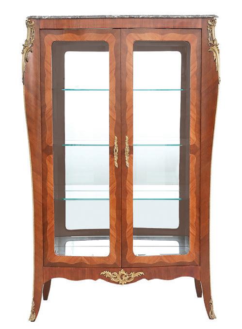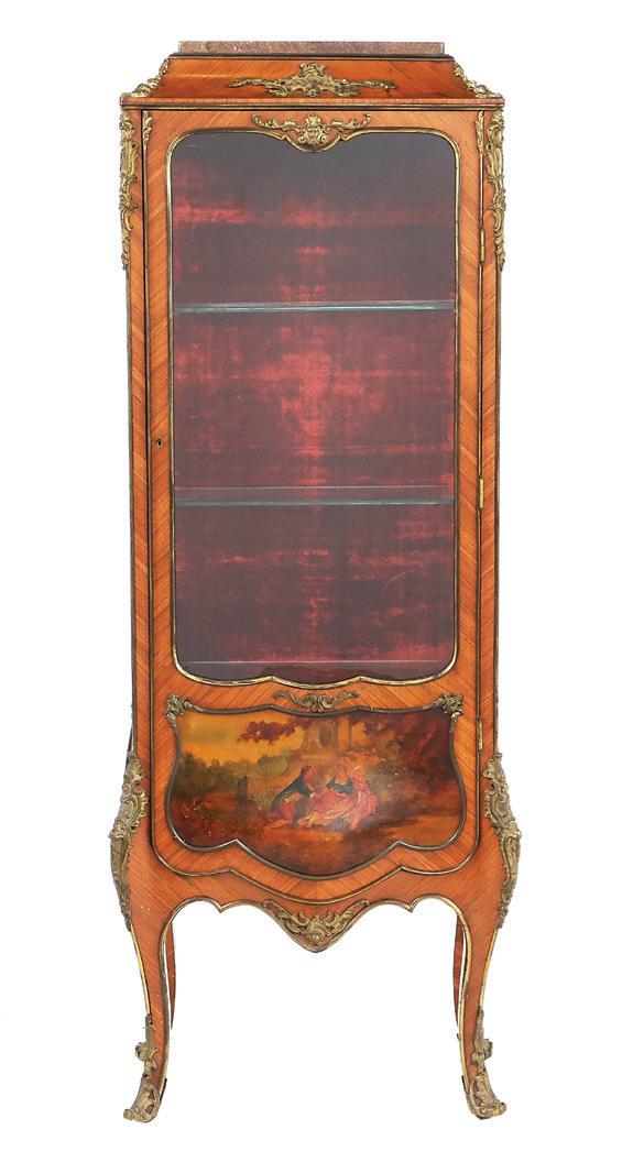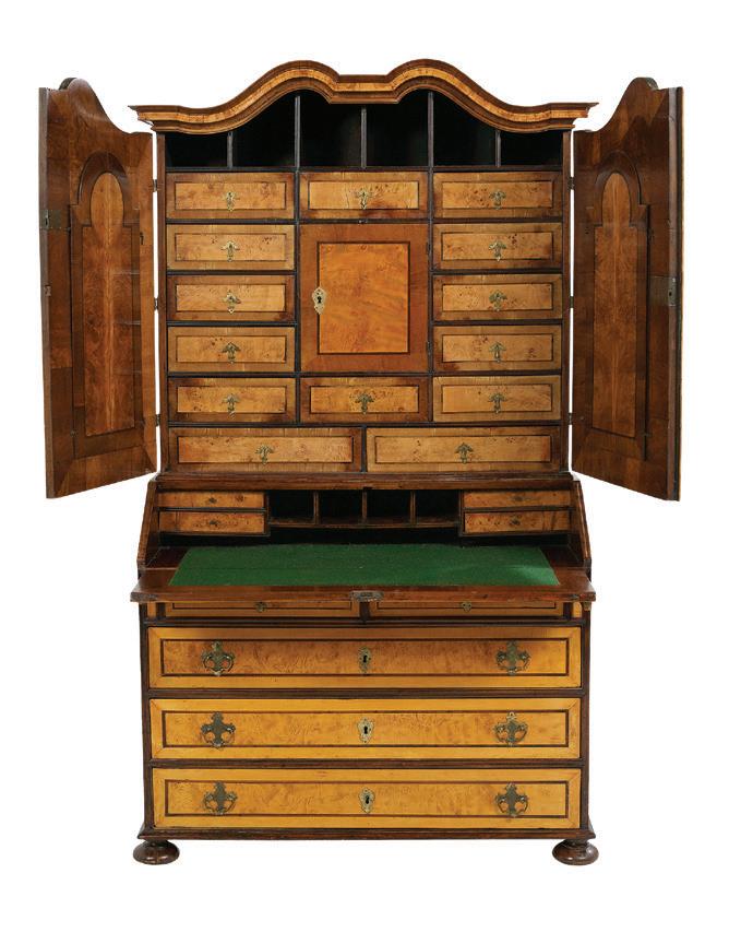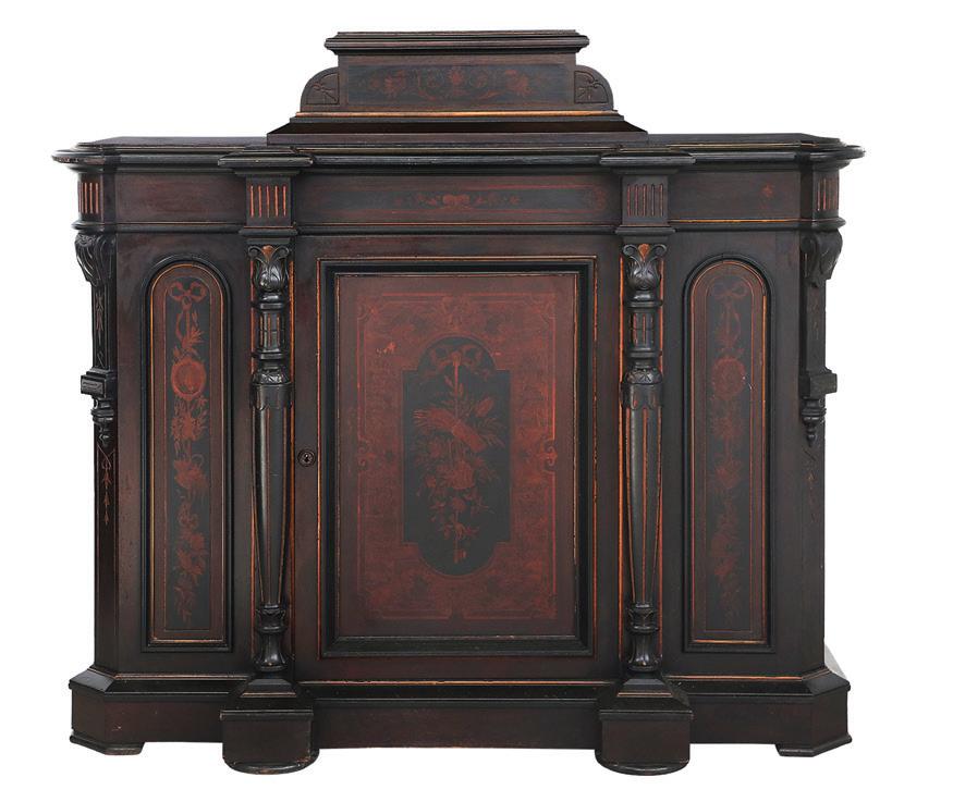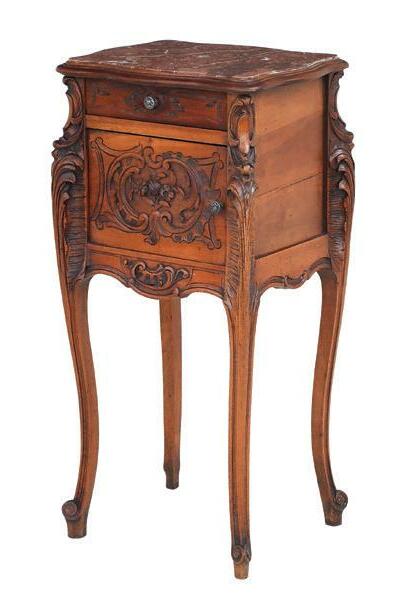 early 20th century, attributed to W. & J. Sloane, New York, the rectangular breakfront top with projecting canted corners, above a conforming case fitted with a central drawer over an acanthine-carved cupboard, flanked to both sides by three short concave drawers, raised on block feet fronted by acanthine scrolls, the drawer locks engraved “Secure 2 Lever, W. & J. Sloane”. h. 37”, w. 55-1/2”, d. 23-1/2”