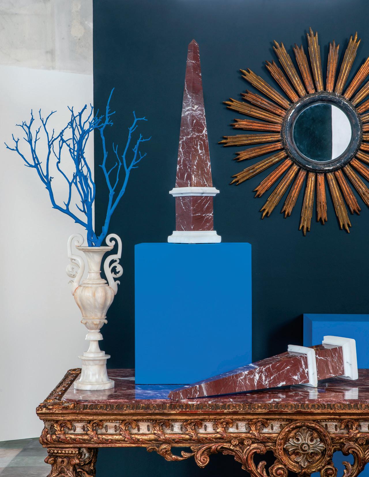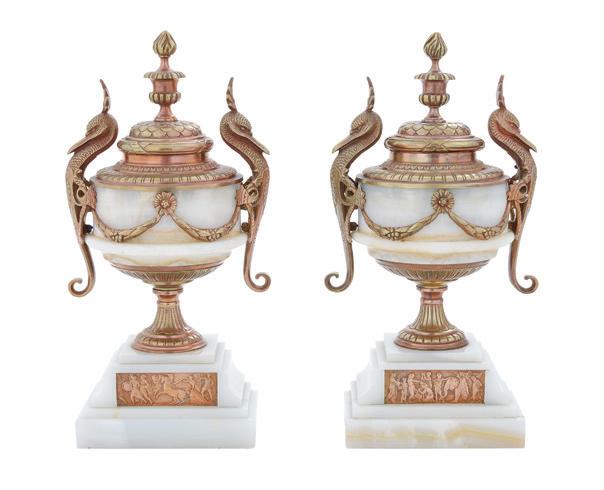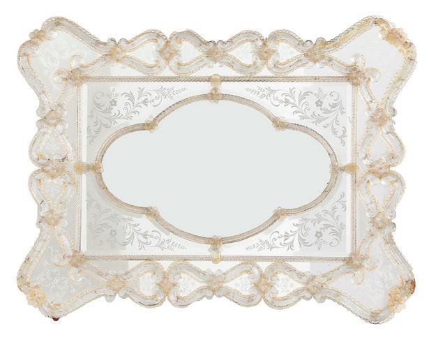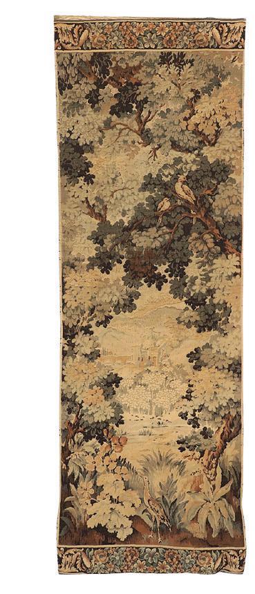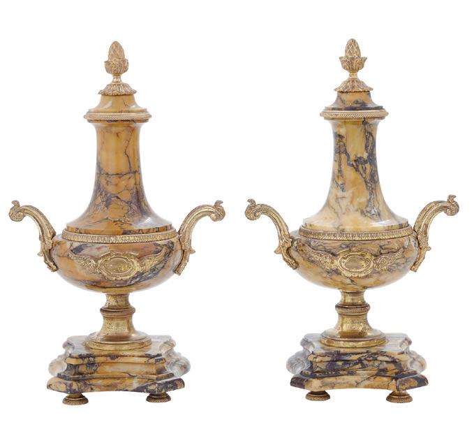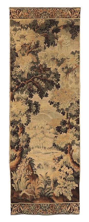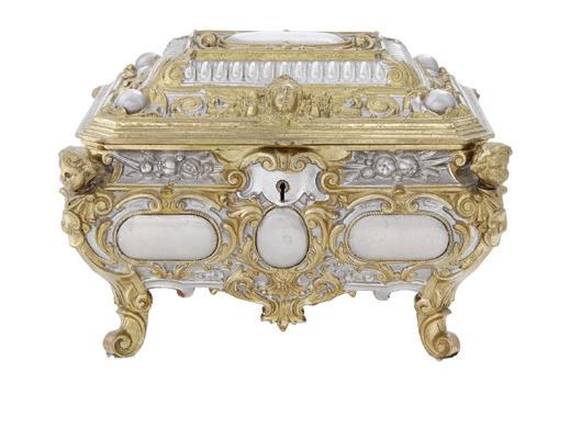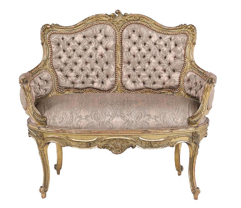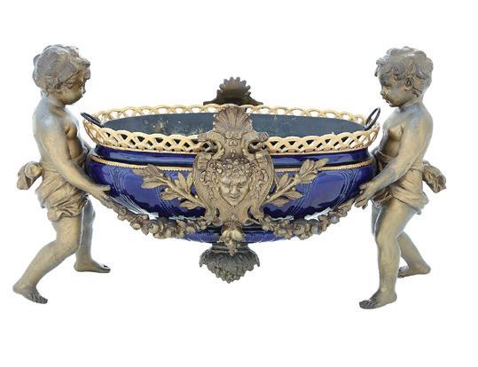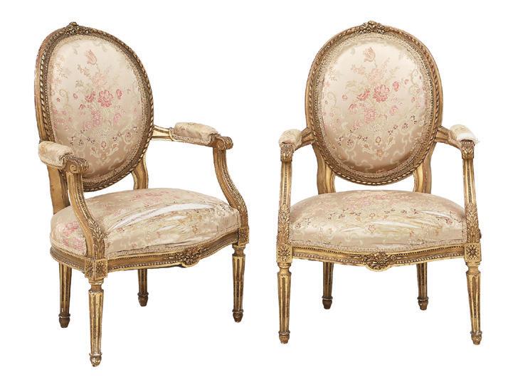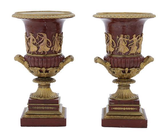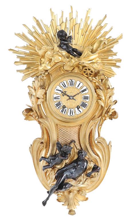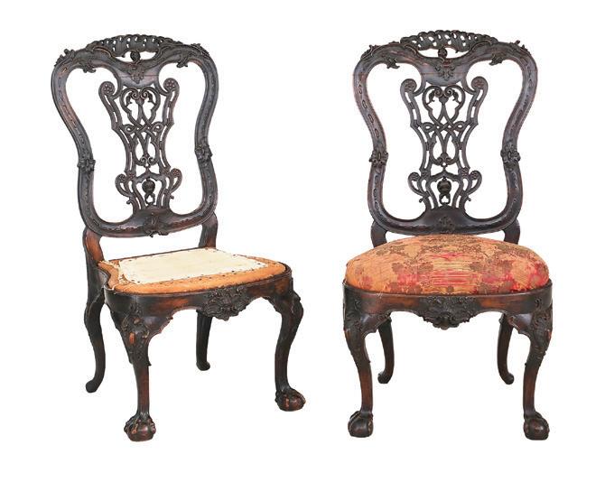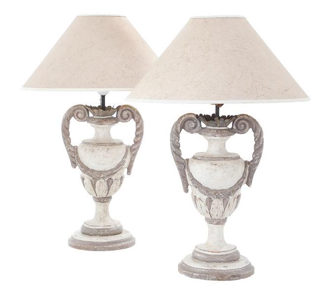 first quarter 20th century, the coved surrounds with gadrooned edges set with urn-form finials and scrollwork, supporting swags of bellflowers, the lower portion with ram’s heads and bellflower drops framed with scrollwork.