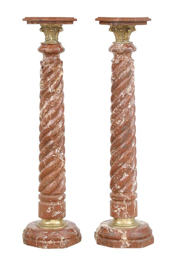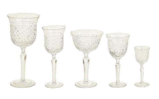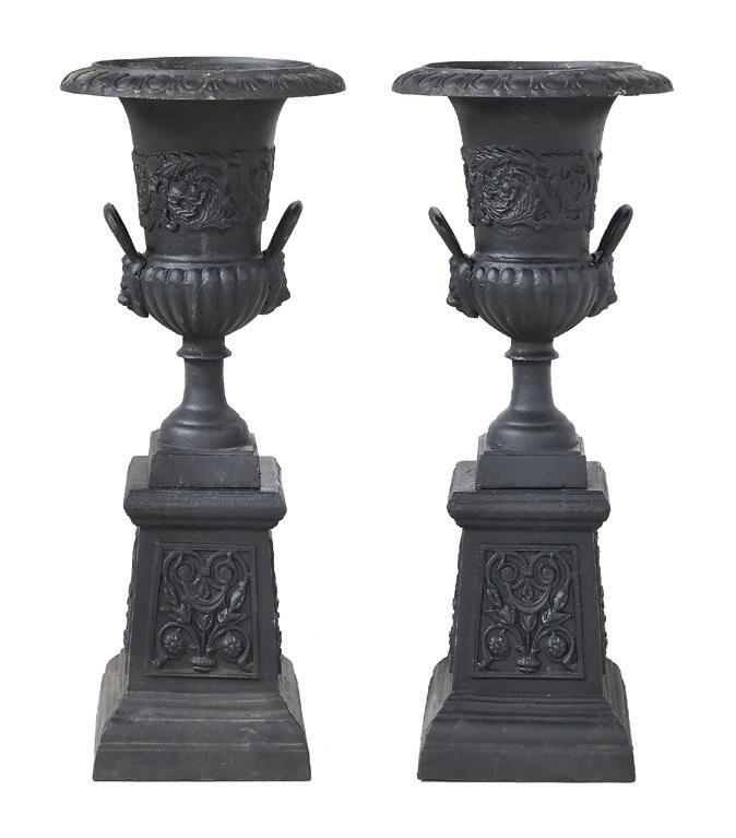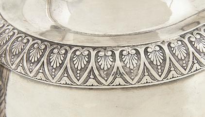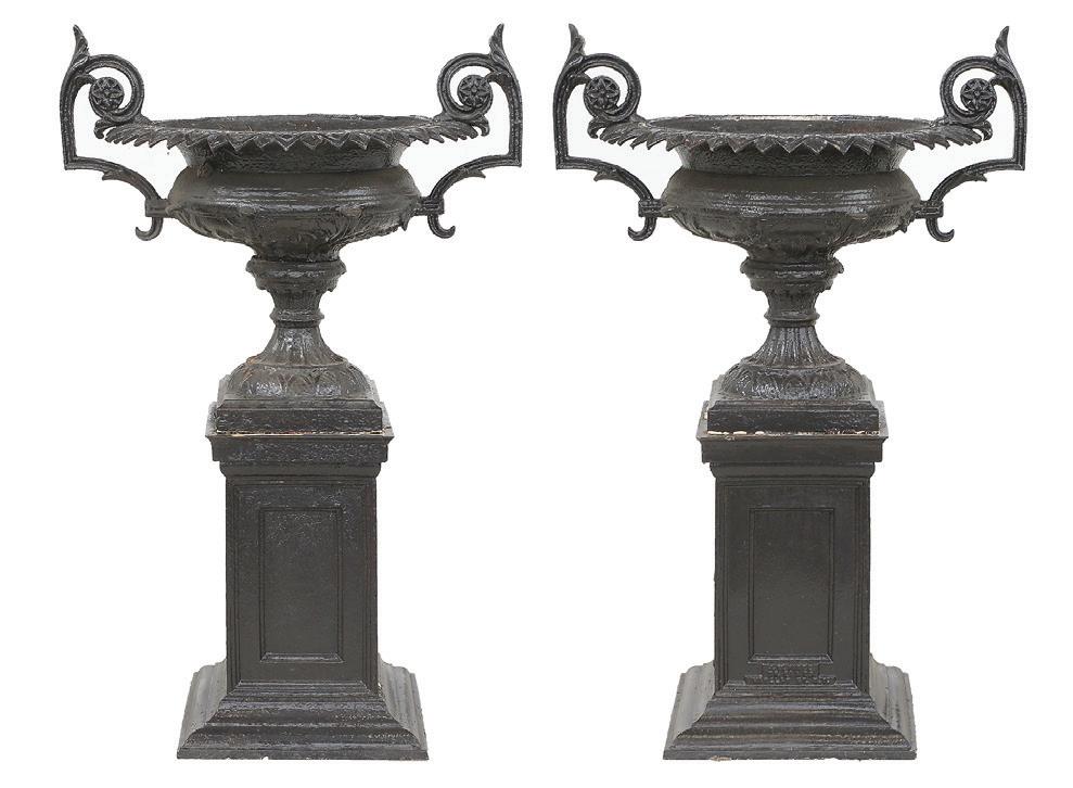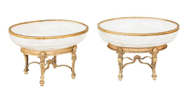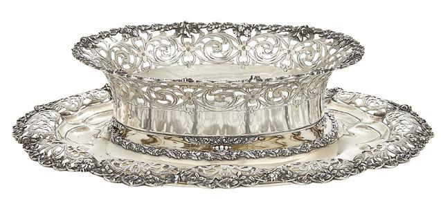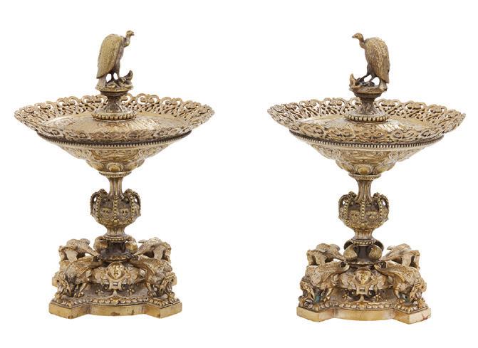 third quarter 19th century, each with a deep, octagonally paneled bowl, with everted rim with realistic grapevine edge, the panels with openwork scrolls, within a grapevine calyx and raised above a grapevine standard to a serpentine-lobed circular base with scroll cartouches and grape clusters.