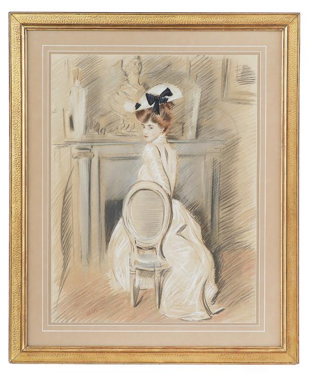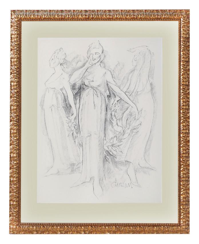 conte crayon signed and dated lower right. Matted, glazed and framed. sight 19-1/2” x 26”, framed 32” x 38”