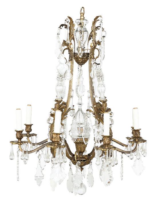 French Patinated Bronze and Crystal Chandelier