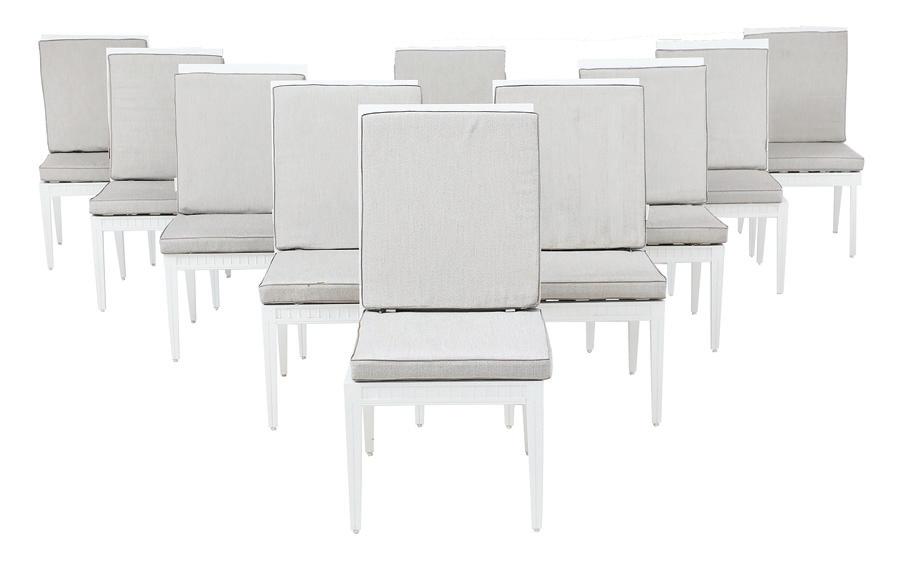 Originally purchased en suite with the dining table, vitrine, pair of pedestal cabinets and eight chairs.
