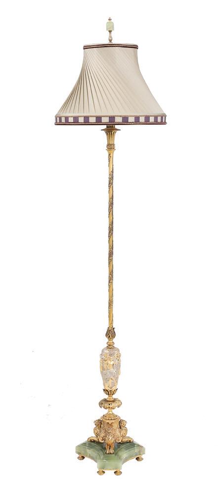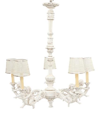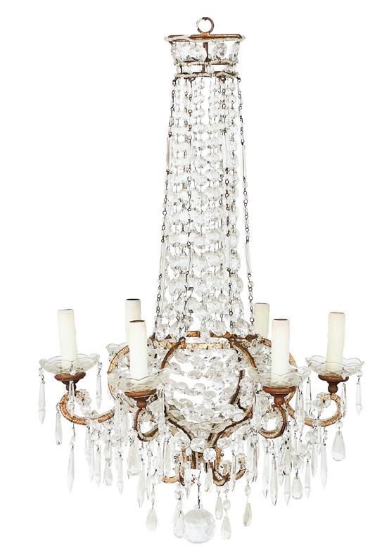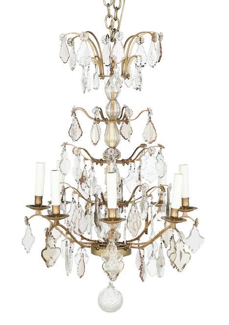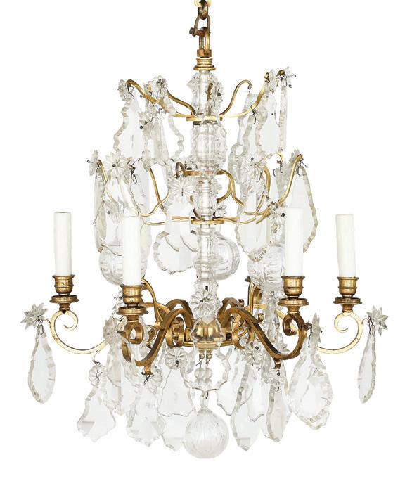 Continental Gilt-Bronze and Molded Glass Five-Light Chandelier