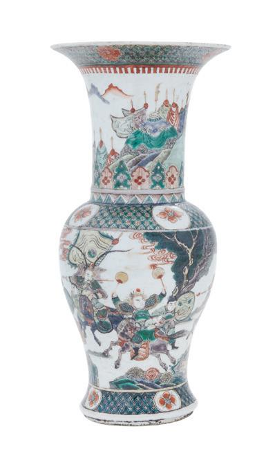 Kangxi period (1661-1722), decorated with warriors on horseback, the foot and shoulder decorated with floral medallions on a diapered ground.