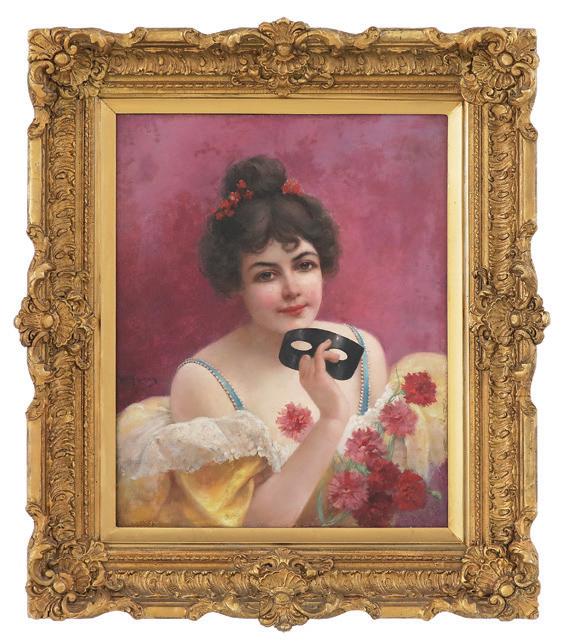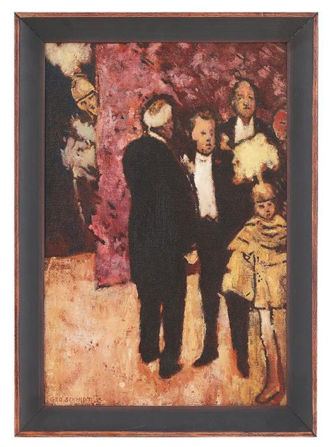 “Carnival Ball” oil on linen signed lower left. Framed. 24” x 16”, framed 27-1/2” x 19-1/2”