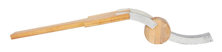 mixed media and wood sculpture signed, titled and dated “Miami 92” on interior of self-base.
