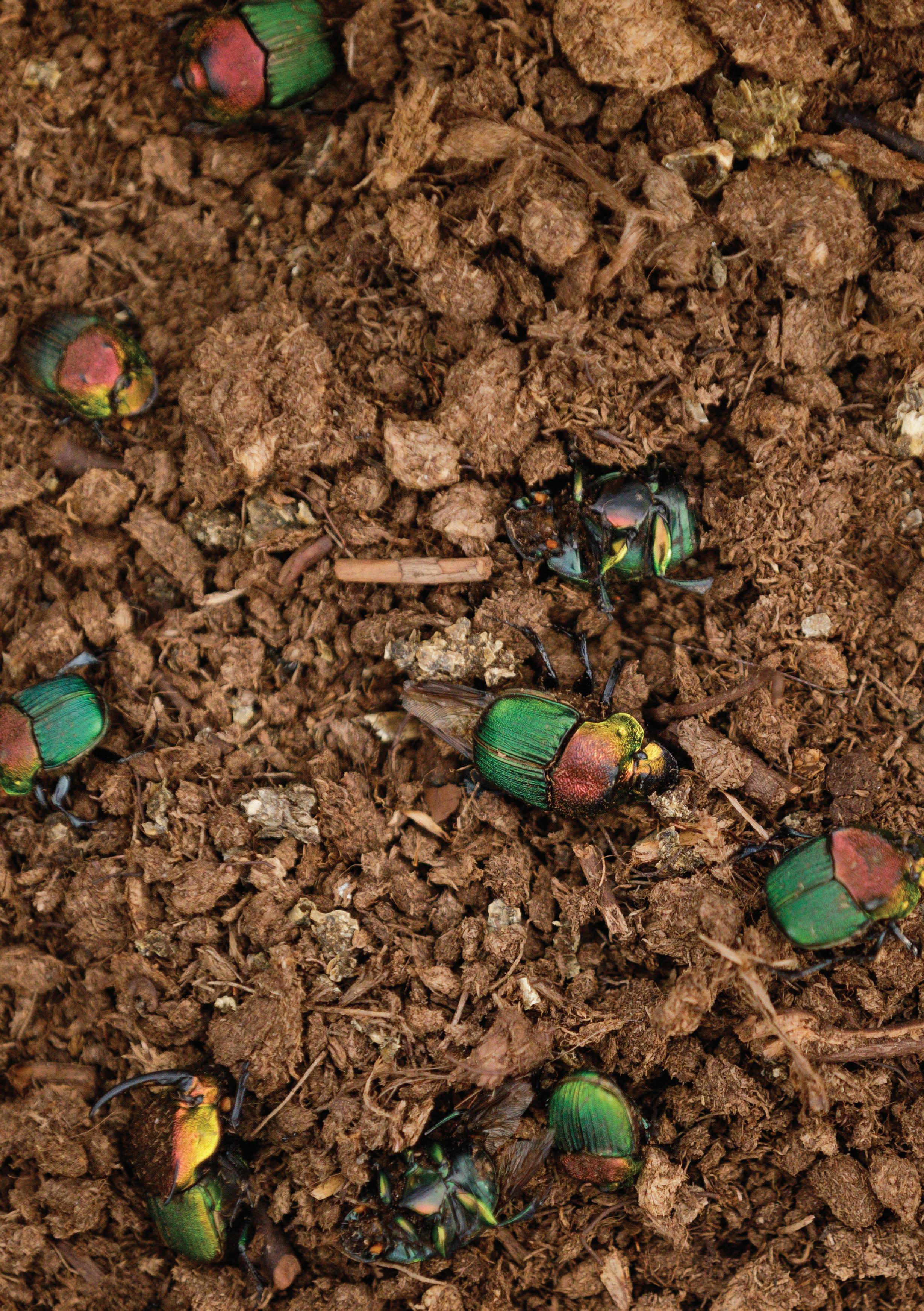 DESIRABLE DUNG BEETLES are collected, sorted and counted as part of ongoing ecosystem research on Noble Ranches in collaboration with Oklahoma State University. These were in an overnight trap on Coffey Ranch in June. Multiple species of the beneficial beetles work together to break down manure quickly, helping add organic matter to soils while reducing parasite and fly populations.