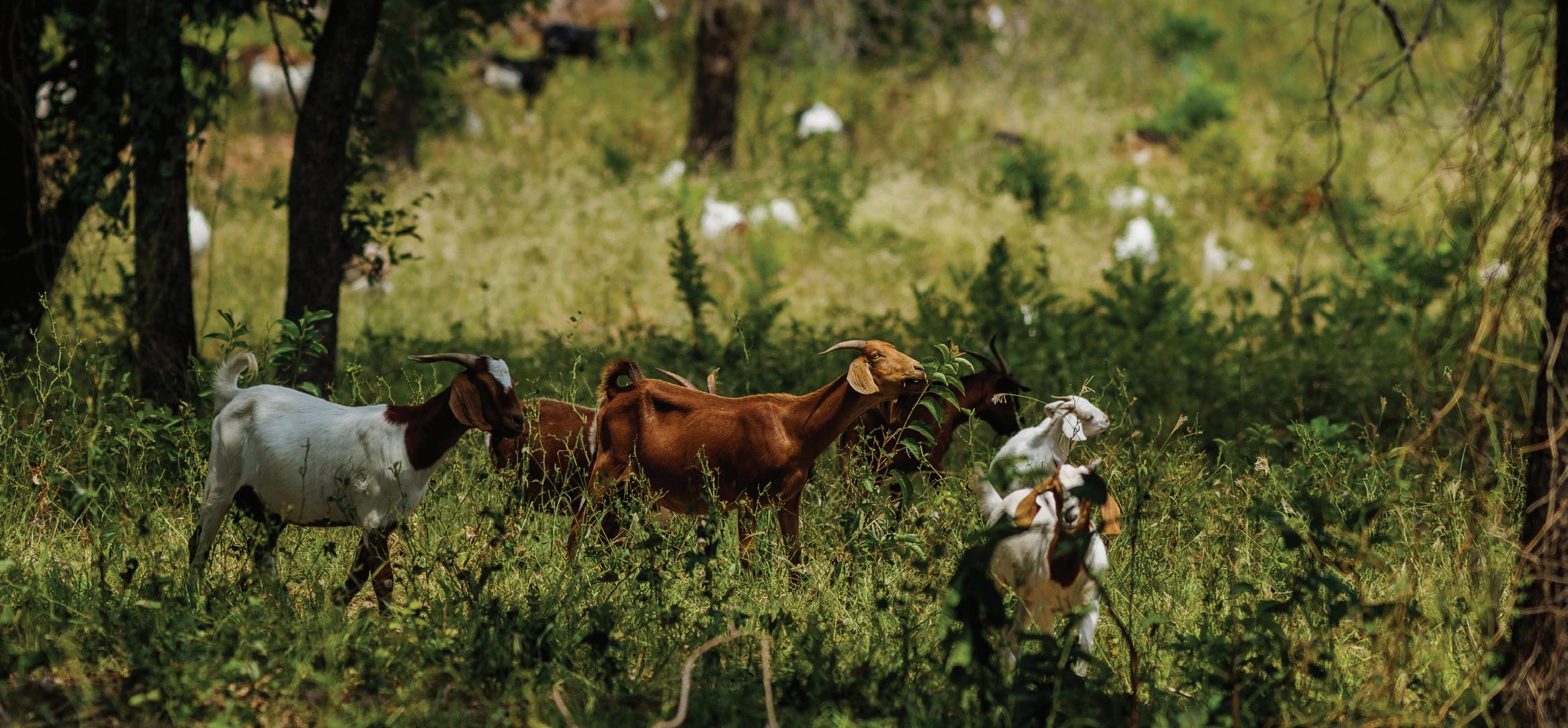 [Top] Goats prefer different plant species than cattle, which makes them well-suited grazing partners to maximize forage in a pasture. [Middle] Noble's "cold turkey" transition to regenerative management principles provided challenges, but also a unique insight into the rate at which soil and plants adapt.