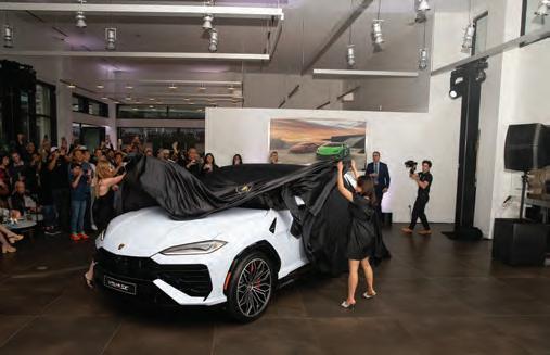 NOBLEMAN was honored to attend the unveiling of the Lamborghini Urus SE, the first plug-in hybrid Super SUV, held on a beautiful evening at the Lamborghini showroom in Newport Beach. Esteemed guests, including long-time Lamborghini customers, VIPs, and members of the media, gathered to enjoy fine wines, small bites, and the opportunity to get up close with a variety of unique Lamborghini. The evening was filled with excitement as attendees mingled and enjoyed music from a live DJ. Additionally, Roger Dubuis showcased their exclusive Lamborghini Squadra Corse watches, created in partnership with Lamborghini.