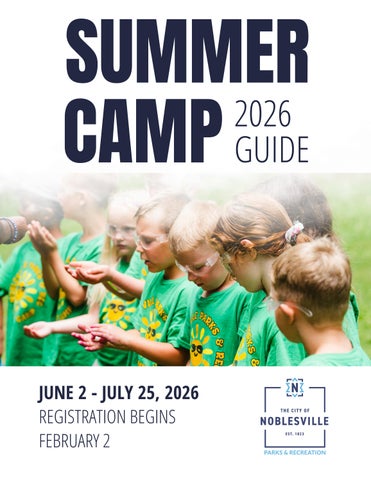 SUMMER CAMP Aswemoveintoanotherexcitingsummer,we’rethrilledtooffer anexpandedlineupofopportunities designedtoinspire creativity,buildfriendships,andsupporteachchild’sgrowthina safeandsupportivesetting.ThankyoufortrustingNoblesville Parkswithyourchild’scampexperience.Welookforwardto anotheramazingsummerfilledwithexploration,adventure,and l i emories!