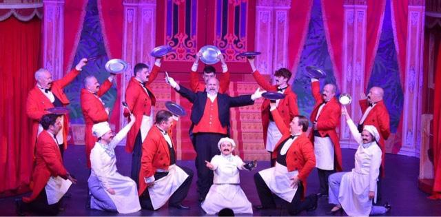 Scenery, costumes and sound were all contacted and ready to go, though the new transport costs for the scenery gave the treasurer some more grey hairs. Then Covid reared its head again and continued to bedevil rehearsals from the turn of the year right up to the show. The lady who was Mrs Malloy had Covid and was so debilitated she had to withdraw. Thankfully she was replaced by one who had been in the original auditions. One of our waiters had a change in job circumstances and regretfully had to withdraw. Luckily another young man came along to replace him so that the whole