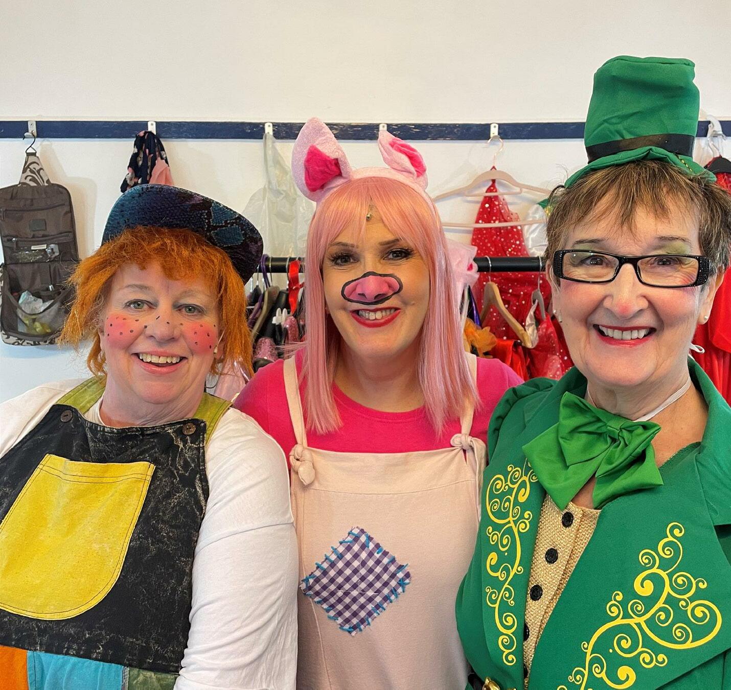 Director, Paula Dymock, Principal of Harlequin Stage School, had an idea for a pantomime with three little pigs, a big bad wolf, a girl in a red cape all ending in a pop concert. The obvious choice was Little Red Riding Hood. How apt as this was the very first pantomime Kay’s performed at the Co-op Hall in Worcester back in 1954.