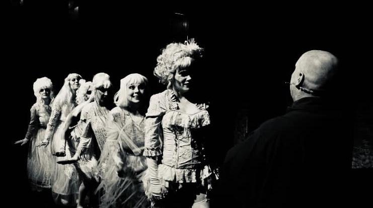 Covid rules were all in place at the theatre. Cast, backstage, and front of house, had to wear masks entering the theatre. Cast could take them off once in the dressing rooms; everyone else had to wear theirs throughout the run ! Everyone was elated, theatre was back. Then it happened - after opening night Covid struck and one by one it started to work its way through the company68 cast members including two teams of 16 Harlequin Stage School junior dancers and almost as many helping backstage !