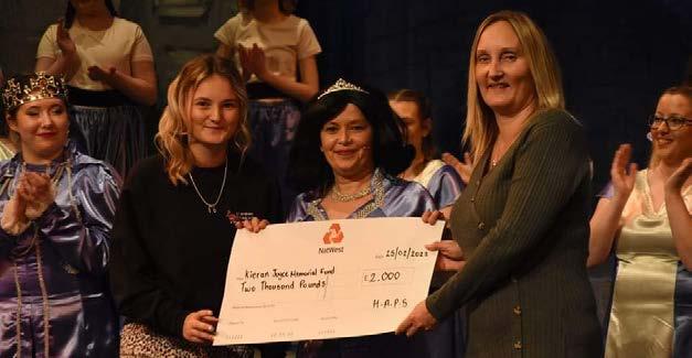 Louisa Tobin said it was a great privilege as HAPS chairman and Snow White in the show, to present a cheque on the last night to Kieran’s mum, Andrea and daughter Ruby Joyce for £2,000.
