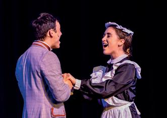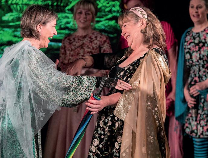 But a Spring 2024 production of the Rodgers and Hammerstein’s classic, staged by VAMPS of St Neots, Cambridgeshire, presented audiences with a beautiful new dimension that they will likely remember for a long time. Through the clever artistry and handiwork of deputy stage manager and set designer Natt Różańska, the large, but plain, performance hall at St Neots’ Priory Centre, a former Benedictine monastery, recaptured vestiges of a place of worship: Różańska crafted six mock ‘stained glass’ windows to hang high on the hall’s side walls. Each colourfully depicted a different scene from the show, such as the novice Maria’s joyous day in the hills, Captain von Trapp’s militarystyle review of his children, nuns deep in prayer by candlelight and Maria entertaining the young von Trapps with