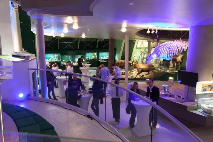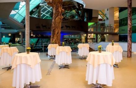 Kombinieren Sie das Foyer und den gesamten Erlebnisbereich, so können bis zu 300 Gäste ein Galadinner in extravagantem Ambiente zwischen Terrarien und Aquarien genießen.