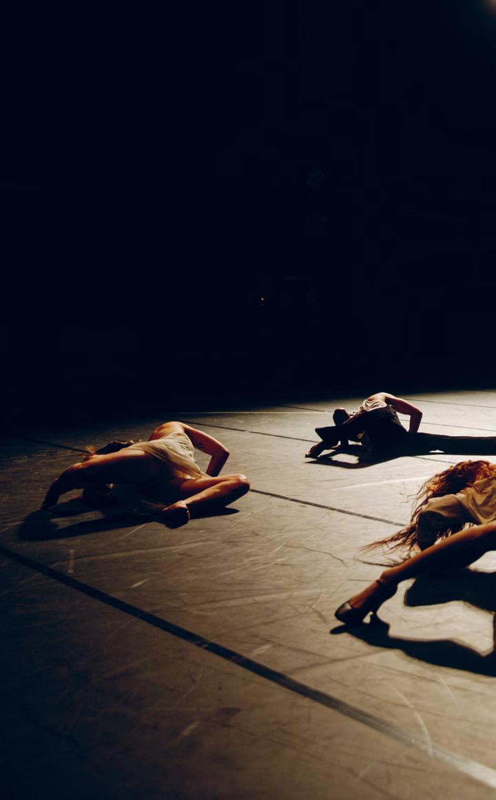 Obwohl Sinfonia Eroïca keiner klassischen Erzählung folgt, entfaltet es doch seine eigene narrative Kraft: Michèle Anne De Mey beschreibt ihr Werk selbst als „eine Reihe von choreografierten musikalischen Phrasen, die aufeinander folgen“. Kraftvoll-artistische Momente wechseln sich dabei mit melancholisch anmutenden, introspektiven und fluiden Bewegungssequenzen ab. In Begegnungen und Trennungen spiegeln sich die Beziehungen des Alltags – das Spiel von Nähe und Distanz, von Anziehung und Verlust. Nur eine Frau bleibt am Ende allein. Doch: Was bleibt von diesen Geschichten? Wie verändern sie die Menschen auf der Bühne –und jene, die zusehen?