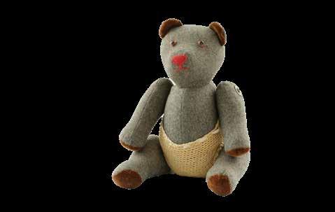 Dieser Teddy wurde zu Weihnachten 1945 einem damals dreijährigen Buben geschenkt. Seine Mutter hatte ihn aus dem Stoff eines Wehrmachtsmantels gefertigt.