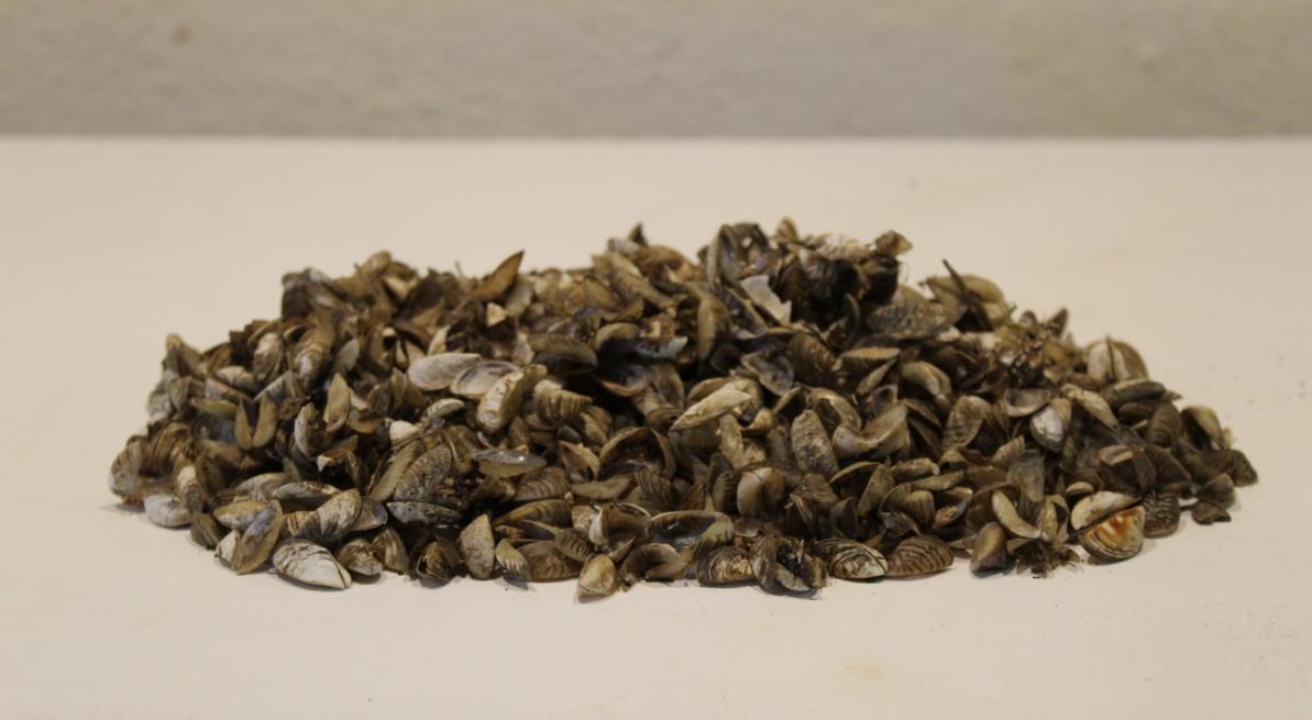 ZEBRA MUSSELS – SHELLS- The zebra mussel is a small freshwater mussel. The species was originally native to the lakes of southern Russia and Ukraine, but has been accidentally introduced to numerous other areas and has become an invasive species in many countries worldwide. 35