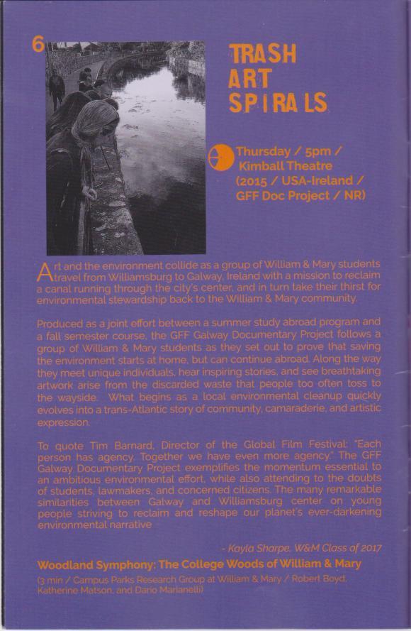 W&M Global Film Festival 2015 Festival, with it's theme of Renewal, Documentation