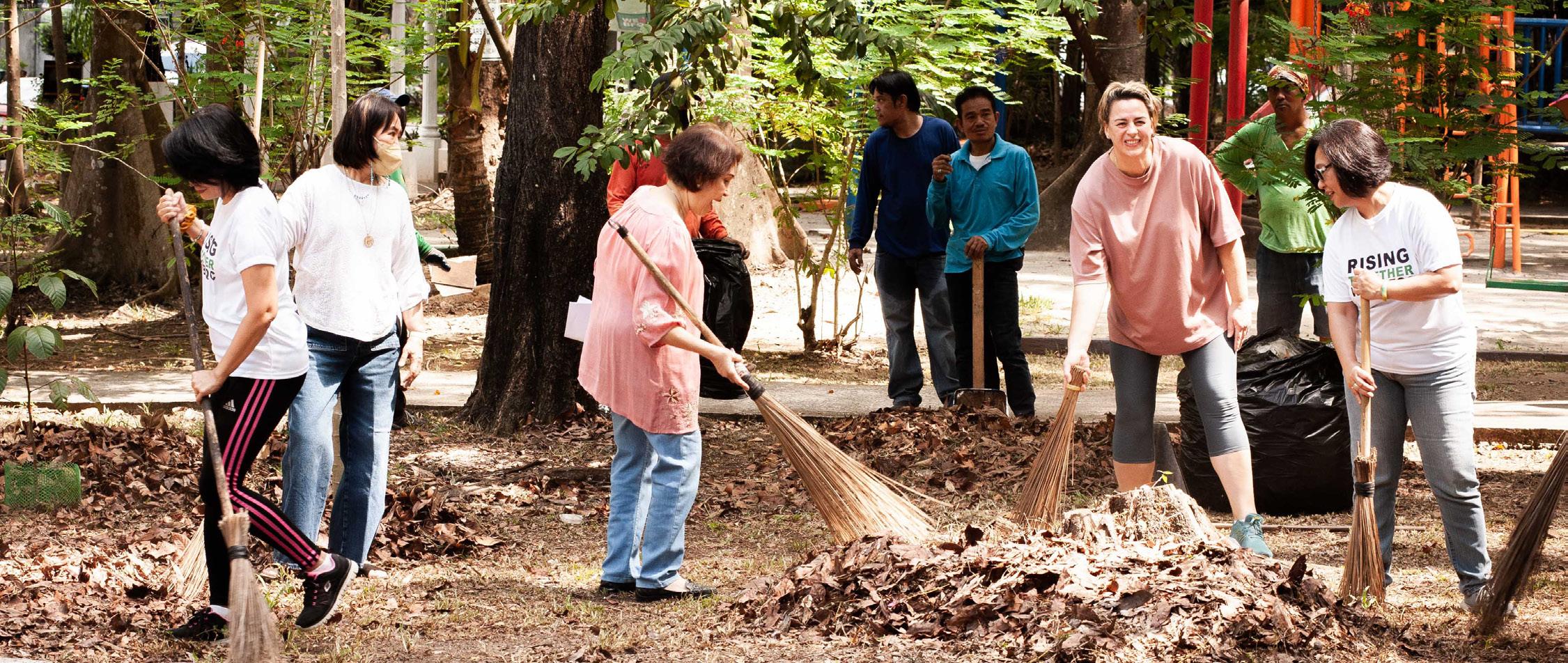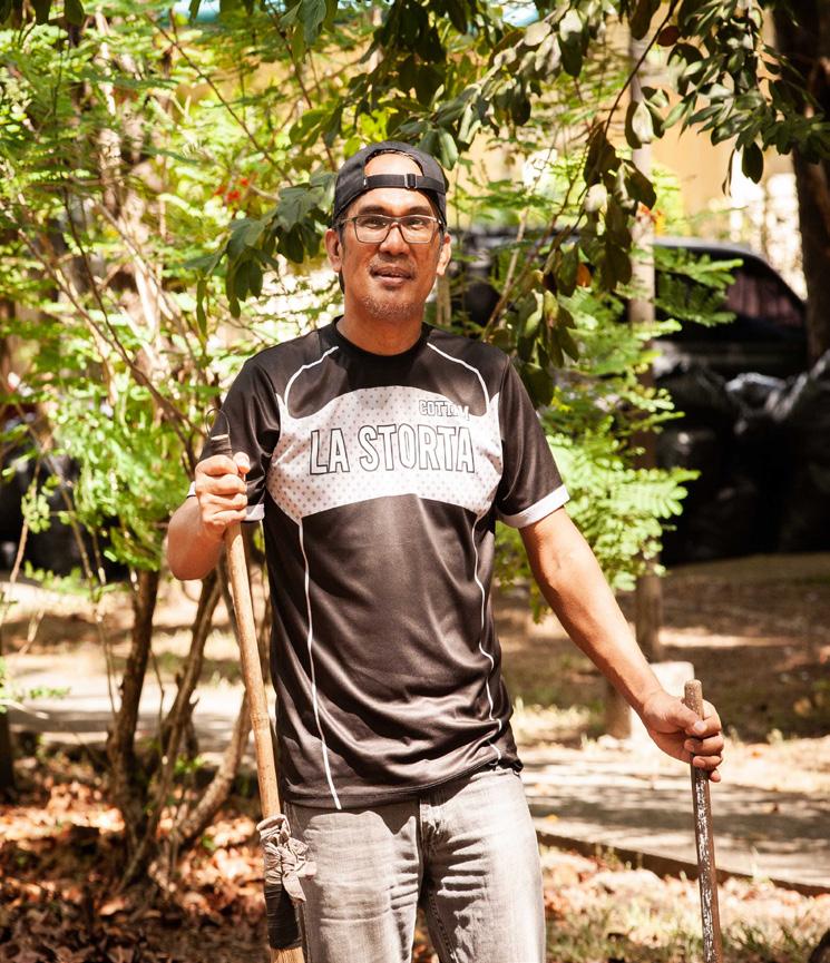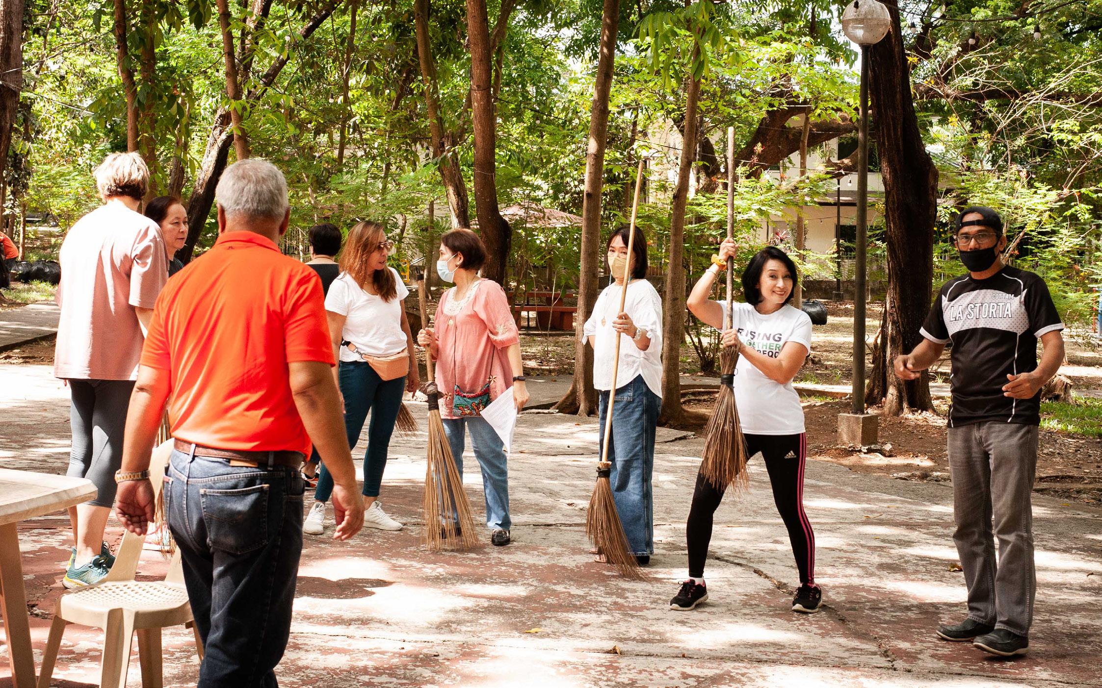 HOA Director Edong Acuña (in orange shirt), overall coordinator of the Wellness, Health and Seniors Committee (top photo is its logo), leads homeowners who have affiliated with sub-group Nature Park Lovers Society (headed by former HOA Director Jess Gonzales), clean up the park around the Gazebo area.