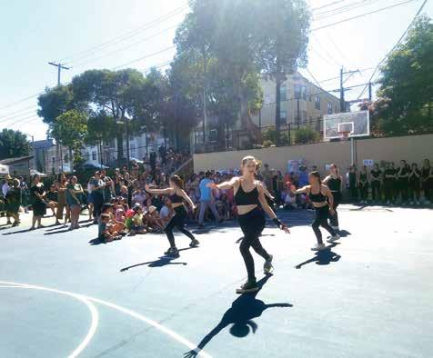 Pro juggler Cary Jerome (above) teaches ribbon dancing while Chi Energy (right) referees the kids at this summer’s Youth Activity Bingo at Noe Valley Town Square.