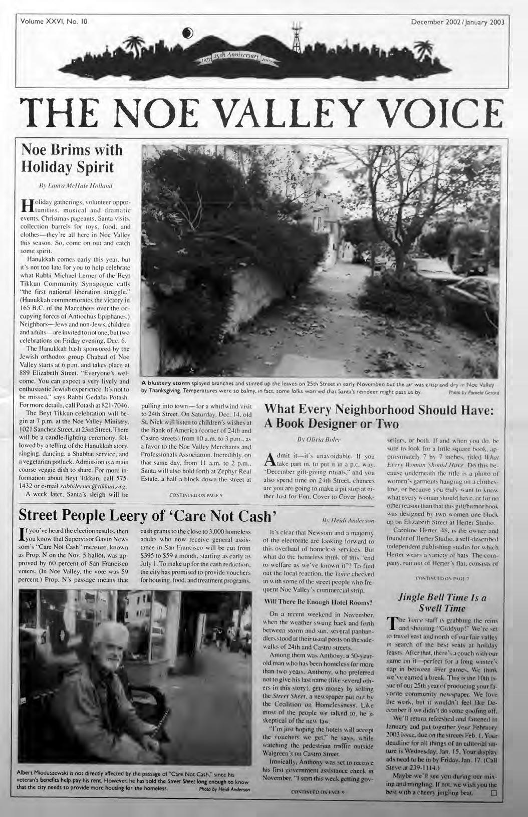 The Noe Valley Voice is an independent newspaper published in San Francisco. It is distributed free in Noe Valley and vicinity during the first week of the month. Subscriptions are available at $40 per year ($35 for seniors) by writing to the above address.