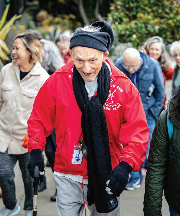 Smile As You Stride. Rudy Stadlberger keeps pace with his neighbors (with a slight head start) while moving along with Noe Walks. After decades of athletic achievements, he may have slowed a bit, but he still keeps a stopwatch to record his times.