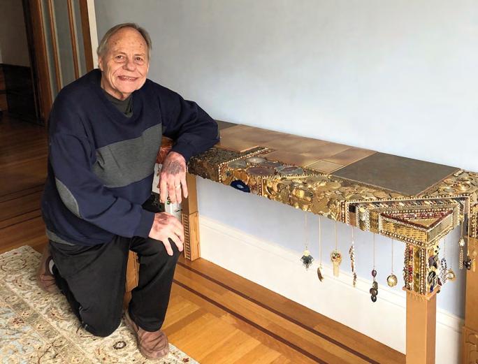 passionate work as a psychiatrist and supervisor at the Tenderloin Mental Health Clinic. As a gentle, man doctor sent to war, he held a special place in his heart for veterans, whether they never made it home, or had their lives changed forever by the horrors of war. He also was an artist. Collecting was in his nature, and he had a stash of rocks, broken jewelry, chains, silverware, lamp parts, and gargoyles. His notorious Kitsch Wall in his garage reflected his eclectic interests. From found objects, he created mosaic pots and mobiles, perfectly balanced and ever changing, out of silver forks and various other shiny objects. Merging his loves of photography