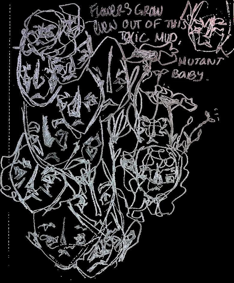 In the redundant apocalypse years of the 1970s, punk shouted through the repressive boredom, drawing upon the mystical otherworldliness of psychedelia to produce the dynamic corporeal unit known as the mosh pit. This tumultuous embodiment of nihilistic anarchy iz a miracle in unifying divergent consciousnesses. So many bodiez moving separately, all pushing against each other but gleefully embracing the collective motion. All of these people, hopelessly thrown about in a sea of everchanging others, let their agency be stripped––or lean into the chaotic force that they possess. With an ampli fied wall of sound coursing through the moshers, punk fosters a collectivity based on no qualification.