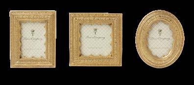 Vermeil photo frames in three assorted sizes: 2.5" x 3" rectangle, 3" x 3" square, and 2.5" x 3" oval. D200084 gold $45