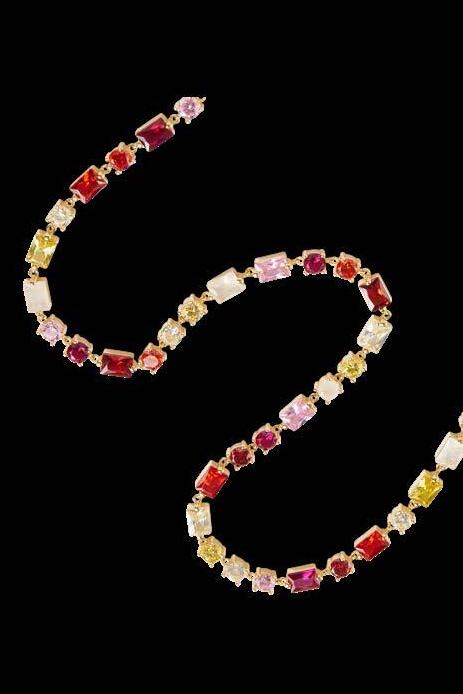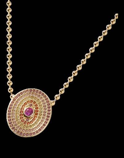 Gemstone Disc Necklace Radiating with serene energy, this necklace features polished rose-hued crystals on a 14-karat gold vermeil pendant. 16" long with 2" extender. Red. Also in aqua. N300129 red $105 | N200109 aqua $105