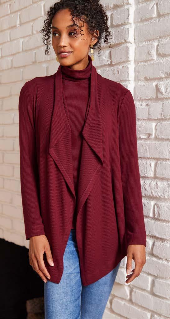 "This fabric is so soft and warm, not clingy, and it looks great. I want to wear it everyday since it's so comfortable. It looks even better in person than the catalog pictures."