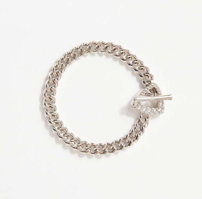 Infinity Chainlink Bracelet A chunky sterling silver plated stainless steel bracelet featuring a crystal-encrusted toggle on a 6.5" long bracelet. Silver. Also in gold. B300056 silver $98