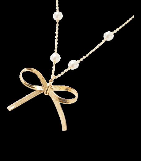 A gold bow finishes this polished beaded pearl necklace. N400063 gold $80