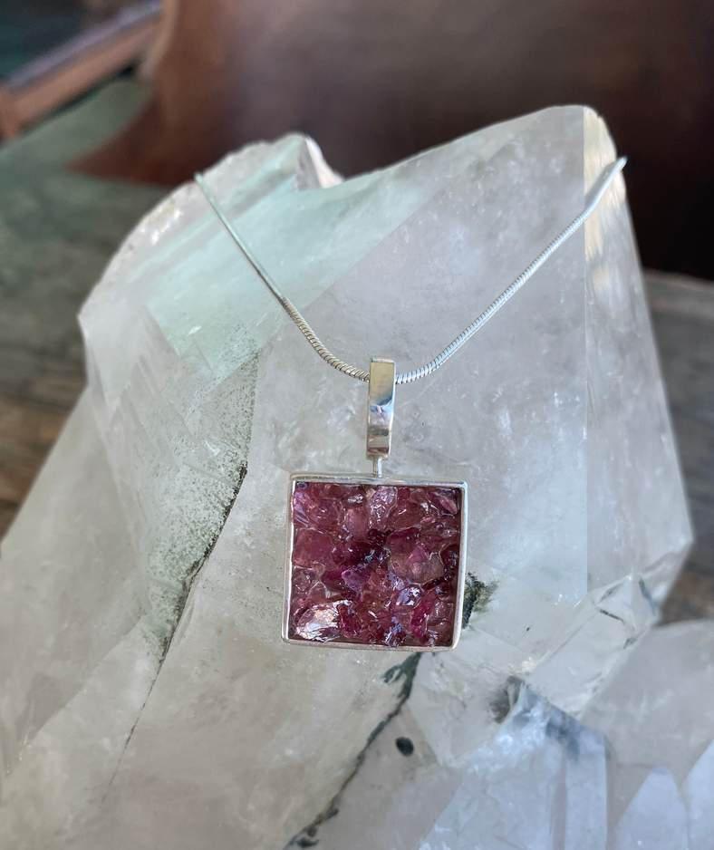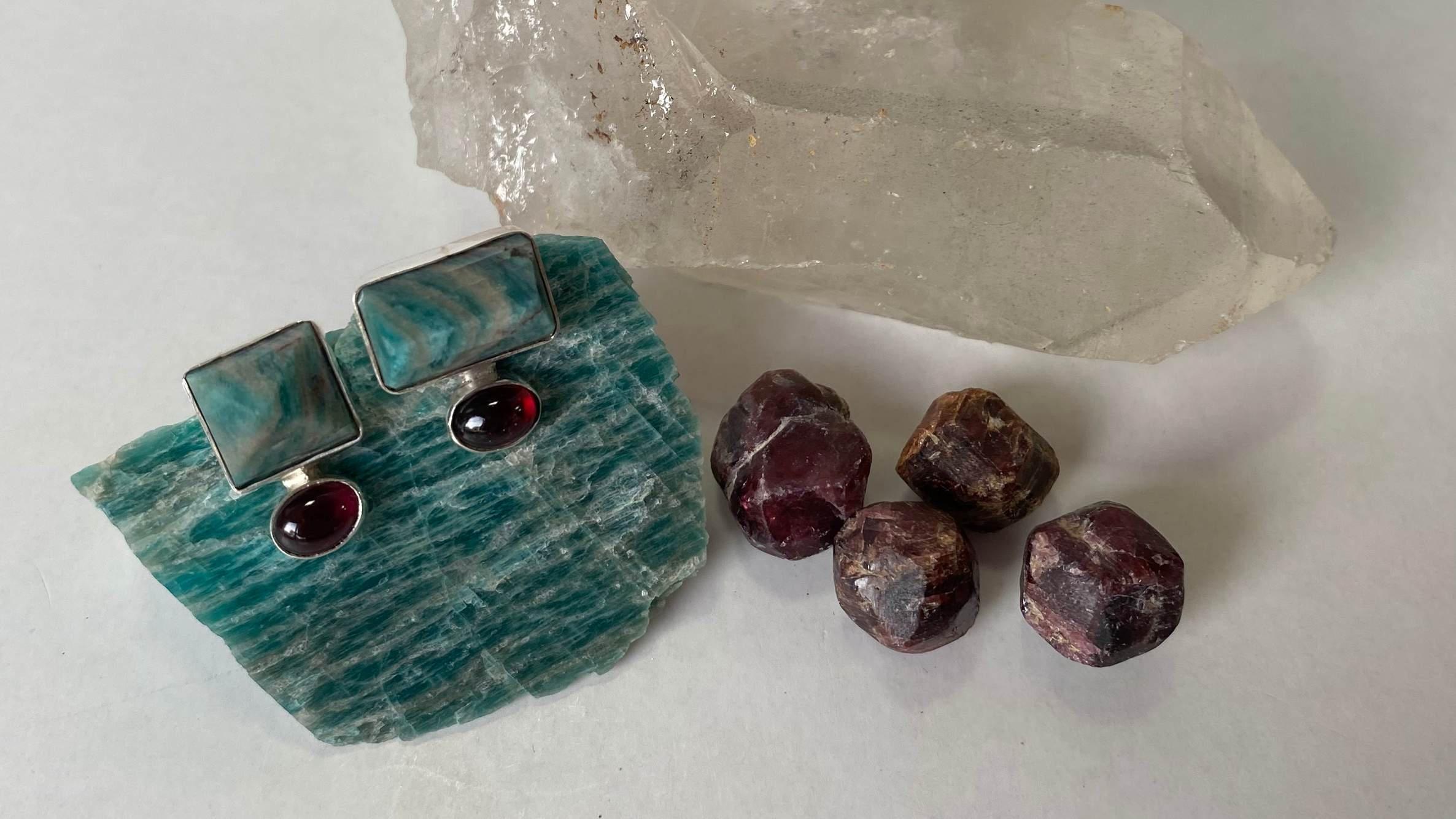 Suavidade, confiança, serenidade, ternura e paz são alguns dos sentimentos que evoca o quartzo rosa. Já a granada, com seu vermelho escuro, traz a dose de força e paixão necessária à vida.
