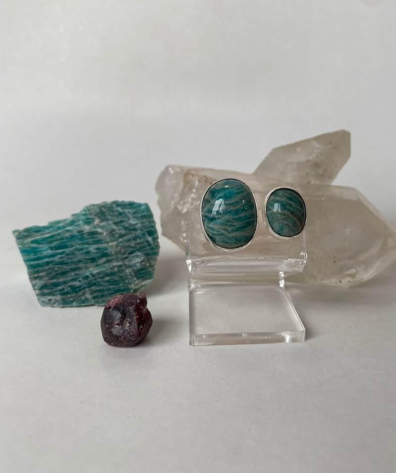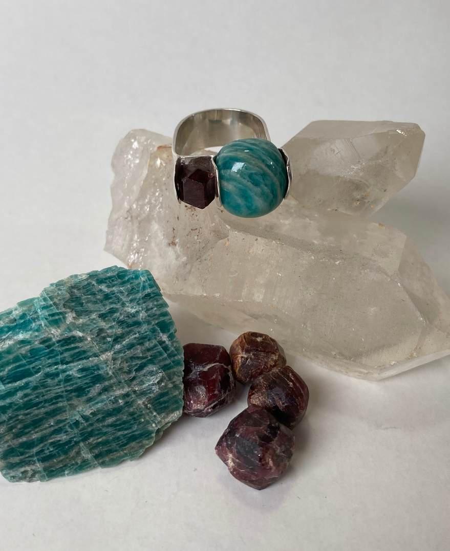 A Coleção Diversa Amazonita simboliza a diversidade de expressões do humano. Esta diversidade é encontrada nos minerais e trazemos a amazonita como elemento central de cada peça, o núcleo e o coração, da criação. A amazonita é combinada a outros minerais, como a granada e o quartzo ametista, de diferentes naturezas –cristalização, cor, composição química – representativos da diversidade e riqueza das conexões humanas.
