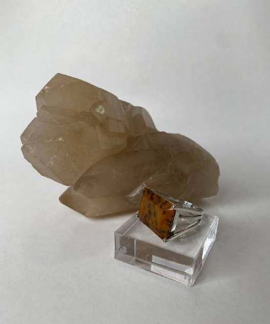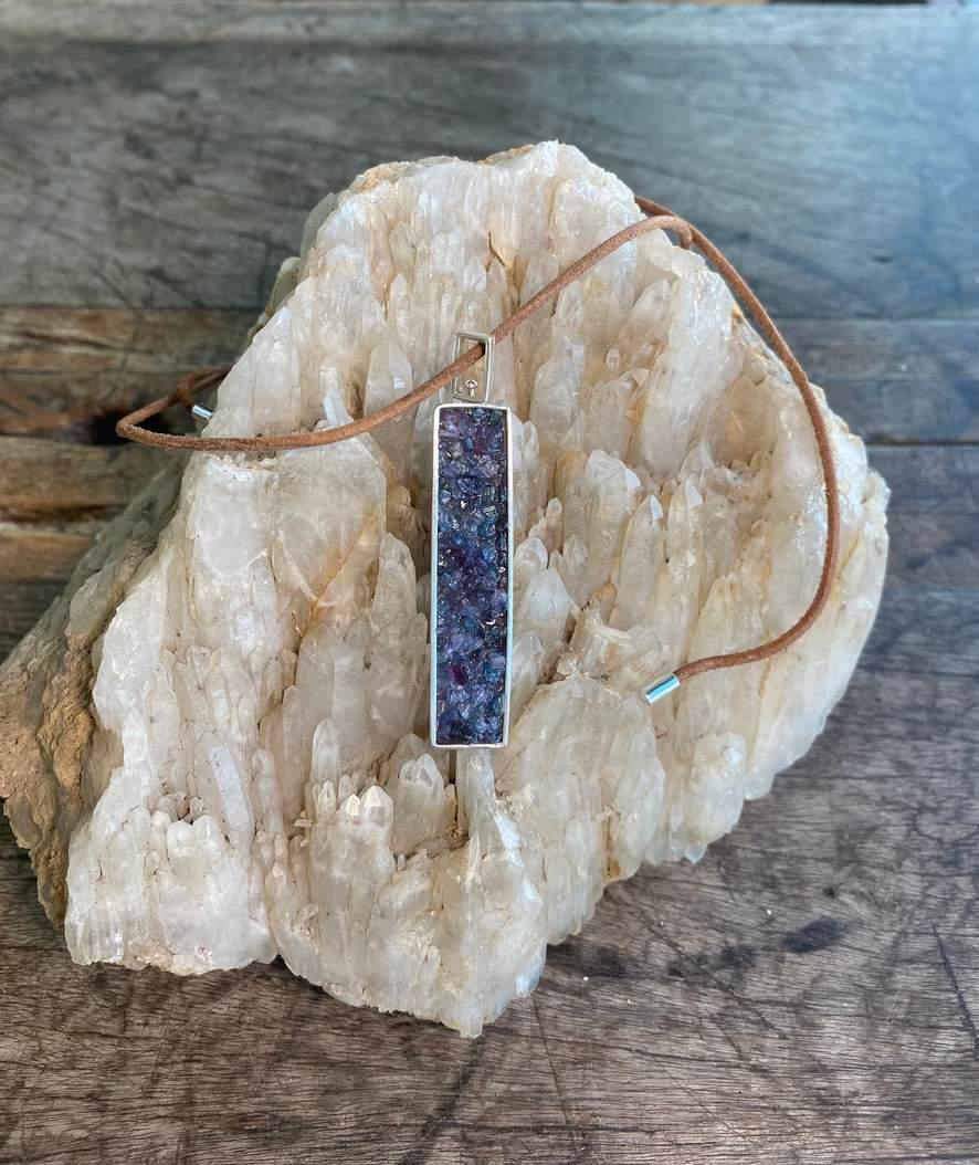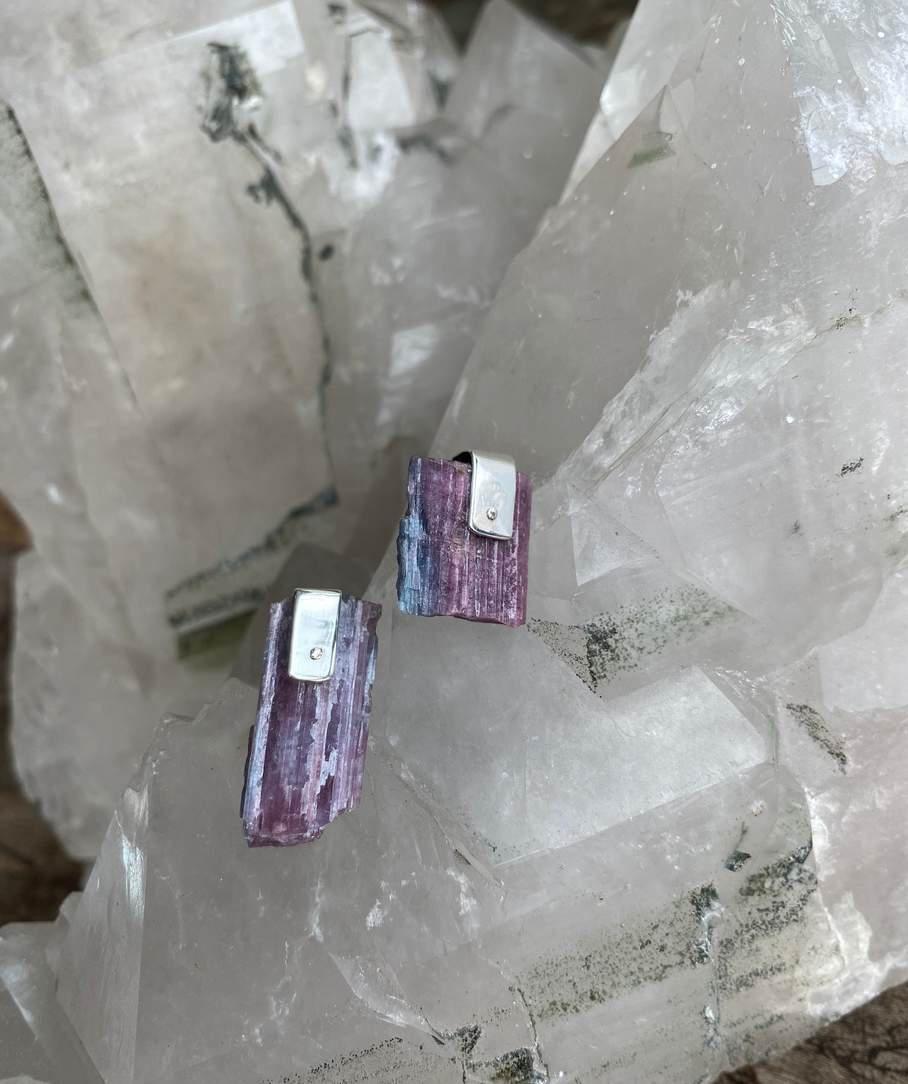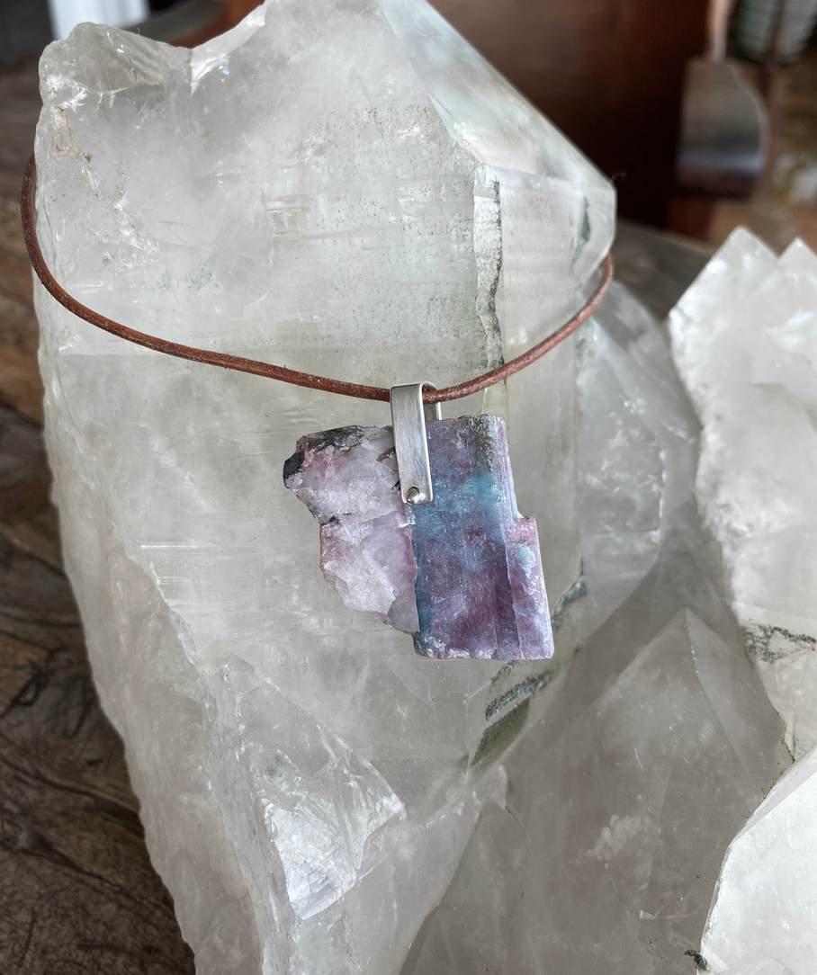 A coleção Fragmentos trabalha com fragmentos naturais de cristais dispostos em elementos metálicos de prata 950 que refletem, em sua grande maioria, a geometria encontrada nas faces dos cristais.