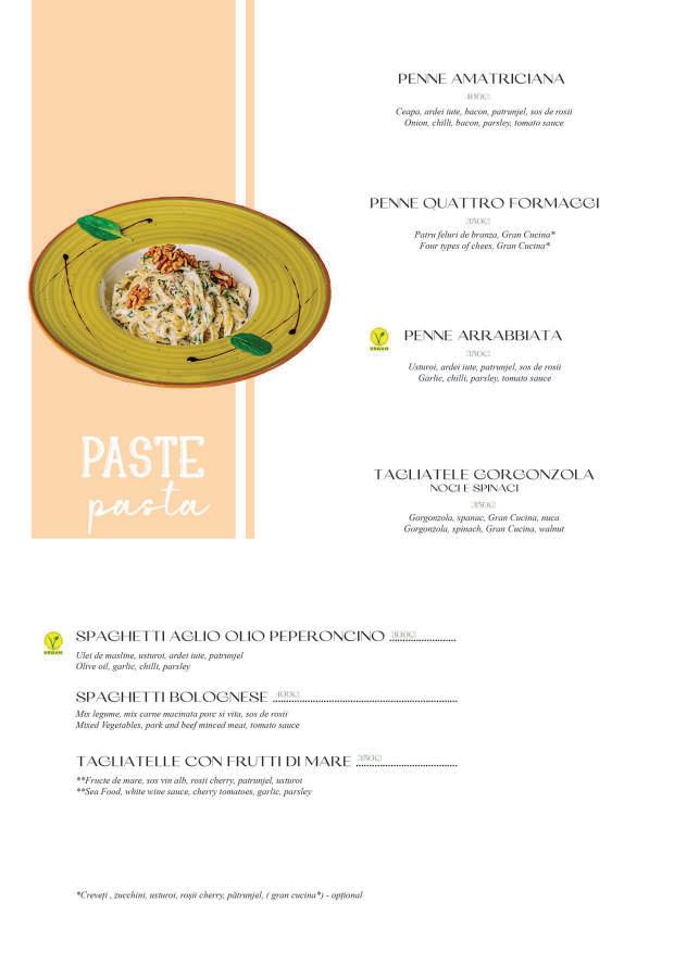 PENNE SORENTINA Faina alba (GLUTEN), apa, Branza Parmezan, Bocconcini (LAPTE/LACTOZA), Ansoa (PESTE), rosii
