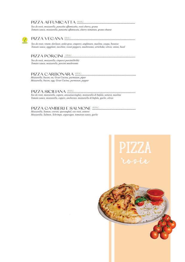 PIZZA UNGUREASCA Faina alba (GLUTEN), apa, sare, drojdie, Mozarella (LAPTE/LACTOZA), {carne porc, slanina, apa, carne separata mecanic, amidon din carto , sare, stabilizatori (polifosfati), condimente, extract condimente, antioxidant (erisorbat de sodiu), conservant (nitrit de sodiu)},rosii, OU, PIZZA POMODORO Faina alba (GLUTEN), apa, sare, drojdie, Mozarella (LAPTE/LACTOZA), rosii, ketchup (rosii, Otet, Zahar, Sare, Condimente, PLANTE AROMATICE, TELINA), ulei masline