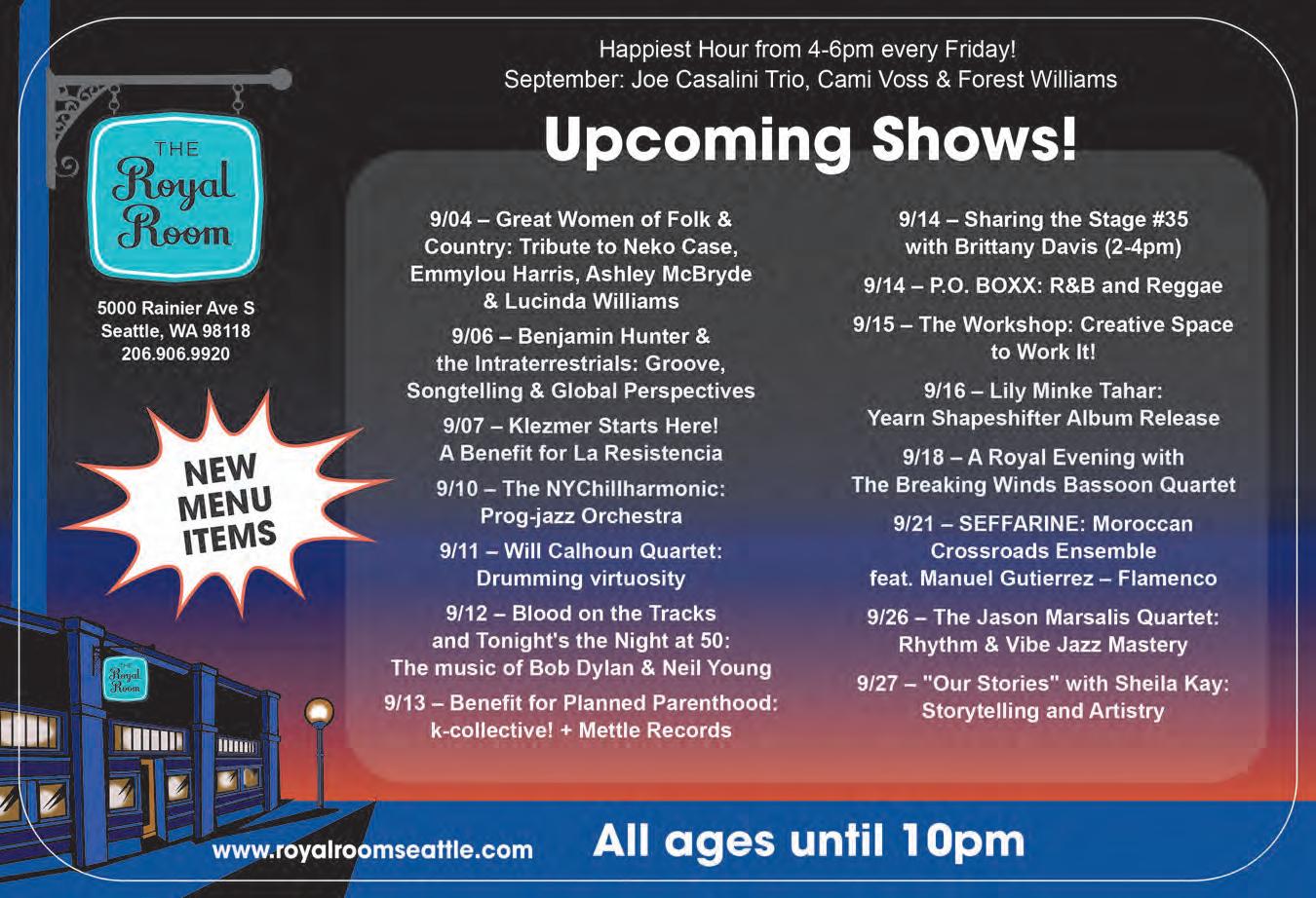 your community in Chinatown (pg. 71), and art is cultivating a fresh jazz scene in Pioneer Square (pg. 57). Art is freestanding neon glowing in unexpected landscapes (pg. 32), films starring homegrown legends (pg. 17), and drag kings finally getting their crown (pg. 48).