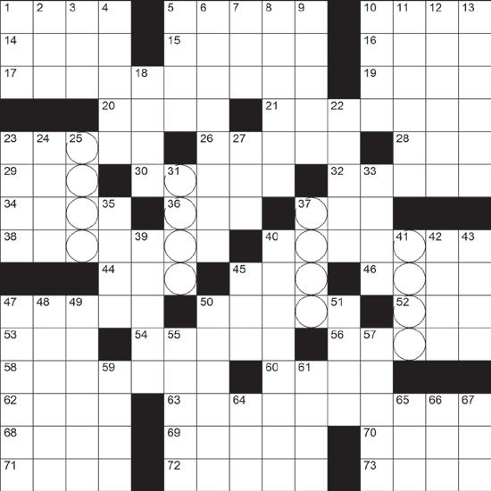 63. Pacific Northwest slang for its long, lightless winter ... and a hint to the circled squares in this puzzle