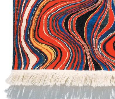 Ahmed first sketches his ideas for a pattern in Photoshop, blending traditional decorations and symbols that he distorts, distends, or melts down. Making a to-scale copy, Ahmed then passes his sketch to his collaborators, a workshop of women who specialize in traditional weaving. They stitch together the carpet using a 300-year-old technique and natural-dyed wool or silk threads.