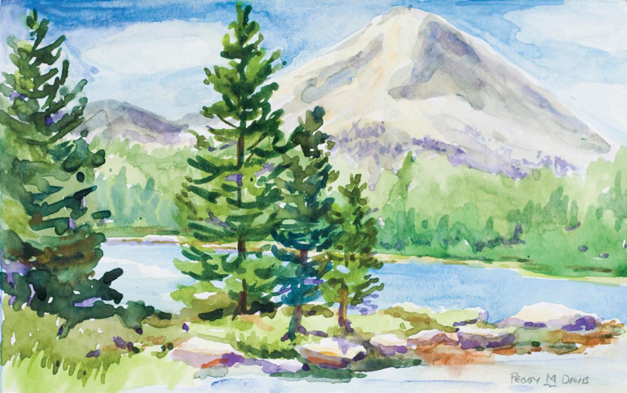 Inspiration strikes in the Wind River Mountains. Peggy Davis paints the scene before her during an Alumni Fly Fishing course, which she took with fellow NOLS graduates including her husband. The two took a fly fishing course together several years prior. Photo by Brad Christensen
