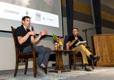 In a plenary session, legendary climber Alex Honnold and Black Diamond co-founder Peter Metcalf discussed the world of rock climbing and emerging trends in outdoor recreation. Afterwards, they were joined by President Sandy Colhoun, along with current NOLS students.