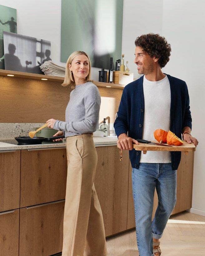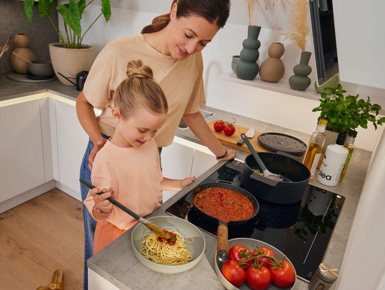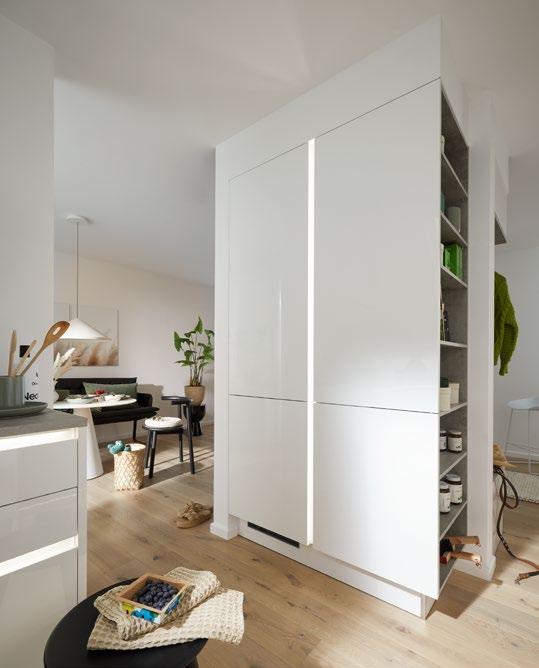 Eating, cooking and playing together – to give Mum and daughter sufficient space in the home, every square metre should be planned with care. One example here is to configure the last 15 cm in a row of units with a narrow pull-out. Reduced-depth cabinets leave sufficient space even in narrow thoroughfares. Purposefully targeted lighting makes the room look bigger and more inviting. Nolte Küchen has just the right answers to all this, be it illuminated finger pulls, wall units with illuminated shelves, floating wall shelves with integrated lighting or lighting below wall units. Every solution gives you the perfect answer to giving a kitchen that eye-catching look. Further details on perfect ORGANISATION IN