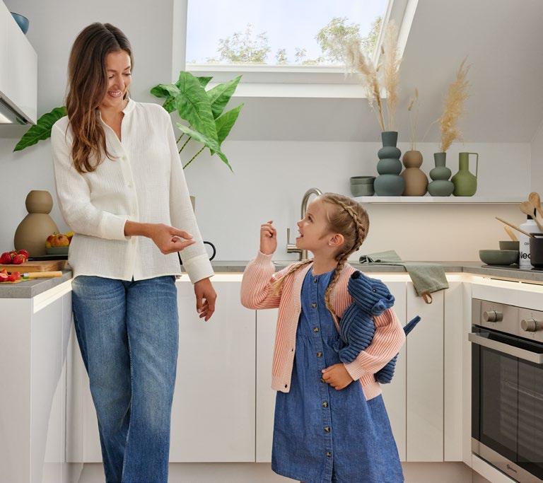 4th floor, about 50 square metres, sloping ceilings: mother and child livingtogether in a small space – this calls for creative planning. Yet storage space galore can be created in oddly shaped spaces too. Whether narrow passages, alcoves or spaces with sloping ceilings: anyone with clever planning ideas can create a homely and inviting kitchen with shelves, low wall units and a variety of corner solutions.