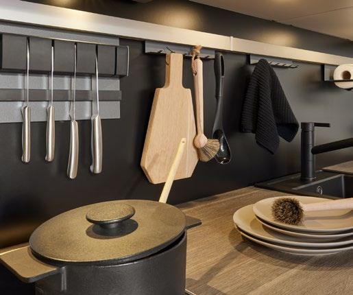 Perfectly organised, everything has its place on just 5 square metres. Doing the washing, storing food, organising waste for recycling it can all be done.