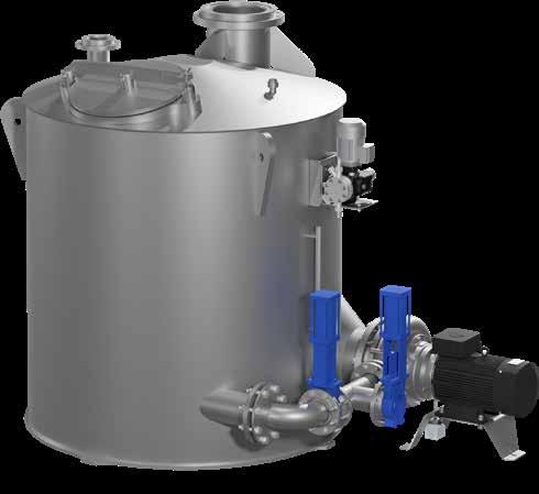 The system can be supplied with tanks in polyethylene (PE) or acid-resistant stainless steel AISI 316, including ATEX-approved configurations. Tank sizes from 1 m³ to 25 m³.